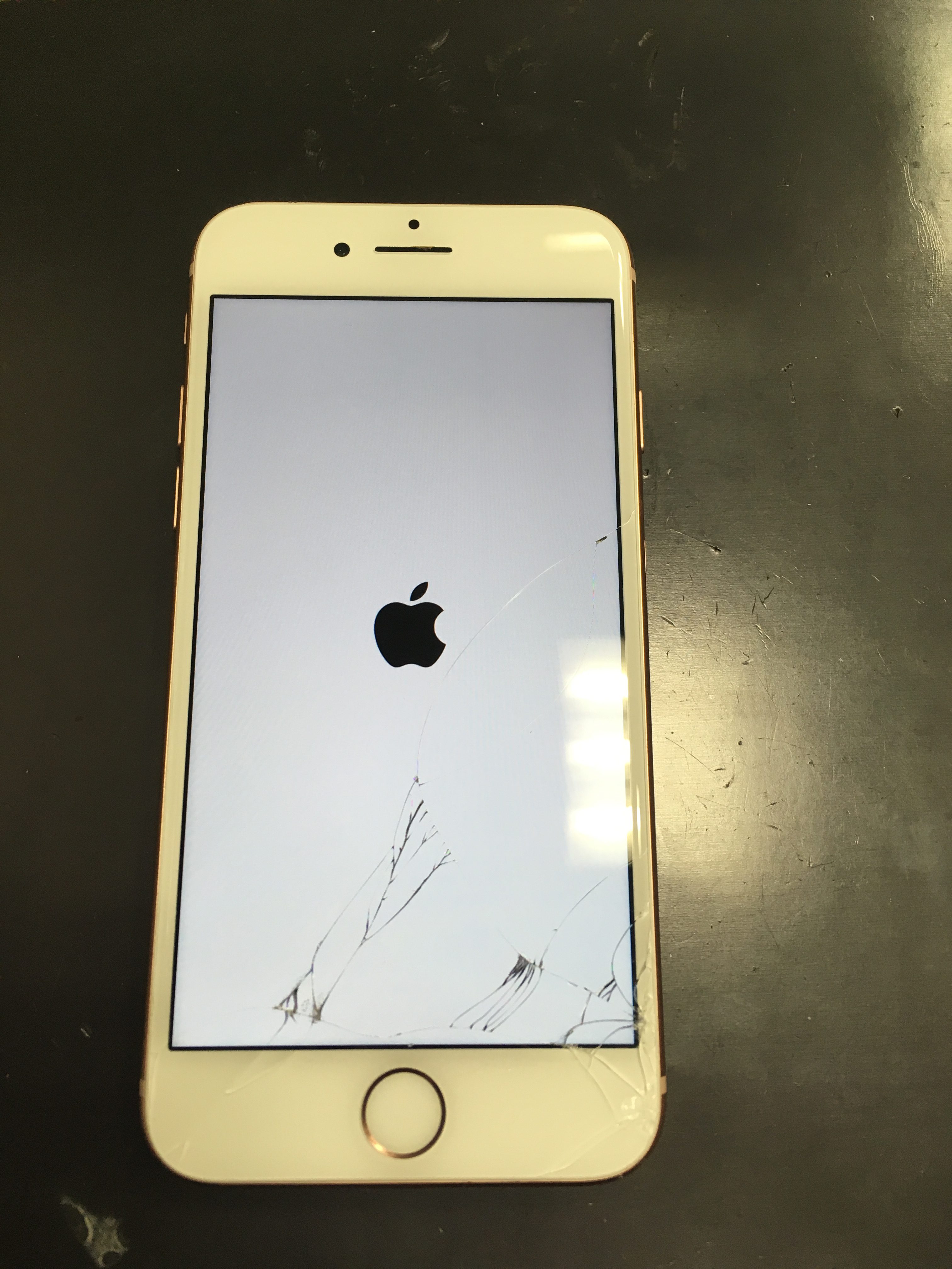 購入してまだ日が浅いiPhone8を落下させてしまったようです。タッチ操作は問題なくできていますが、これからも長く使うとのことなので、画面交換修理をご依頼していただきました。