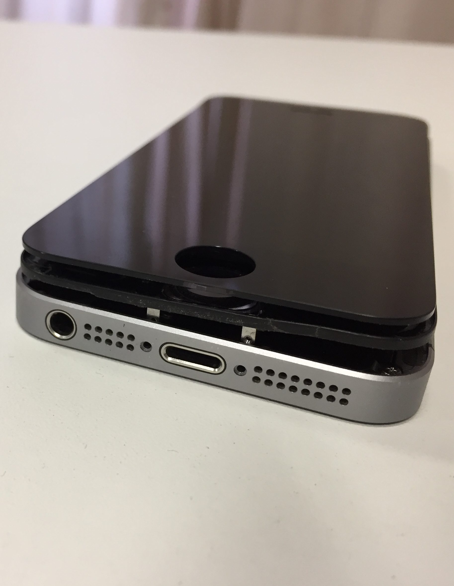 こちらのiPhoneSEは一度お水に落としてしまい液晶画面に水のシミが出来てしまったので乾かしたら直るんじゃないか!とご自身で画面を開けて乾燥させたそうです!