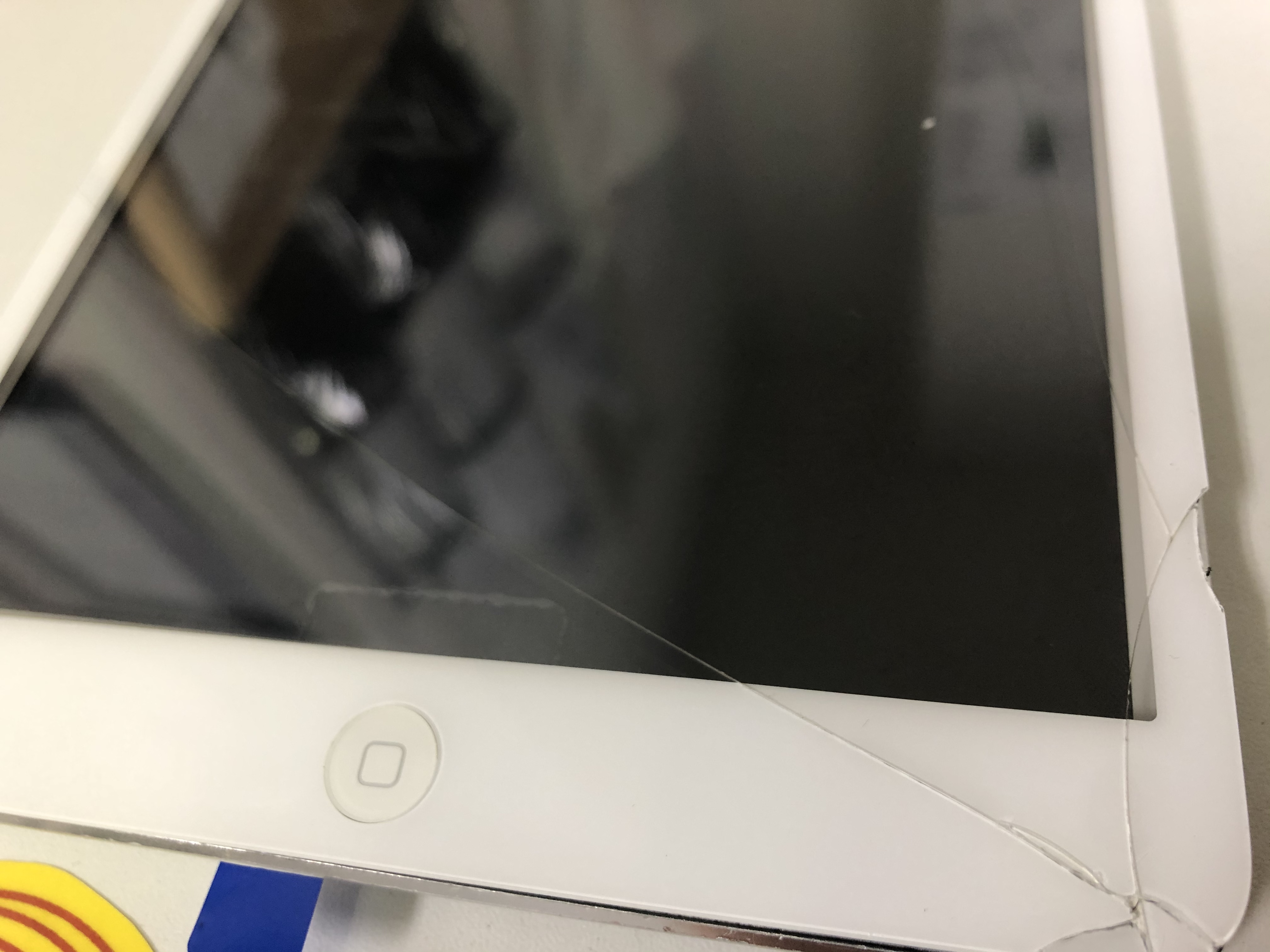 お子様がご使用されていた際にぶつけてしまい、画面右下からヒビ割れてしまいました。